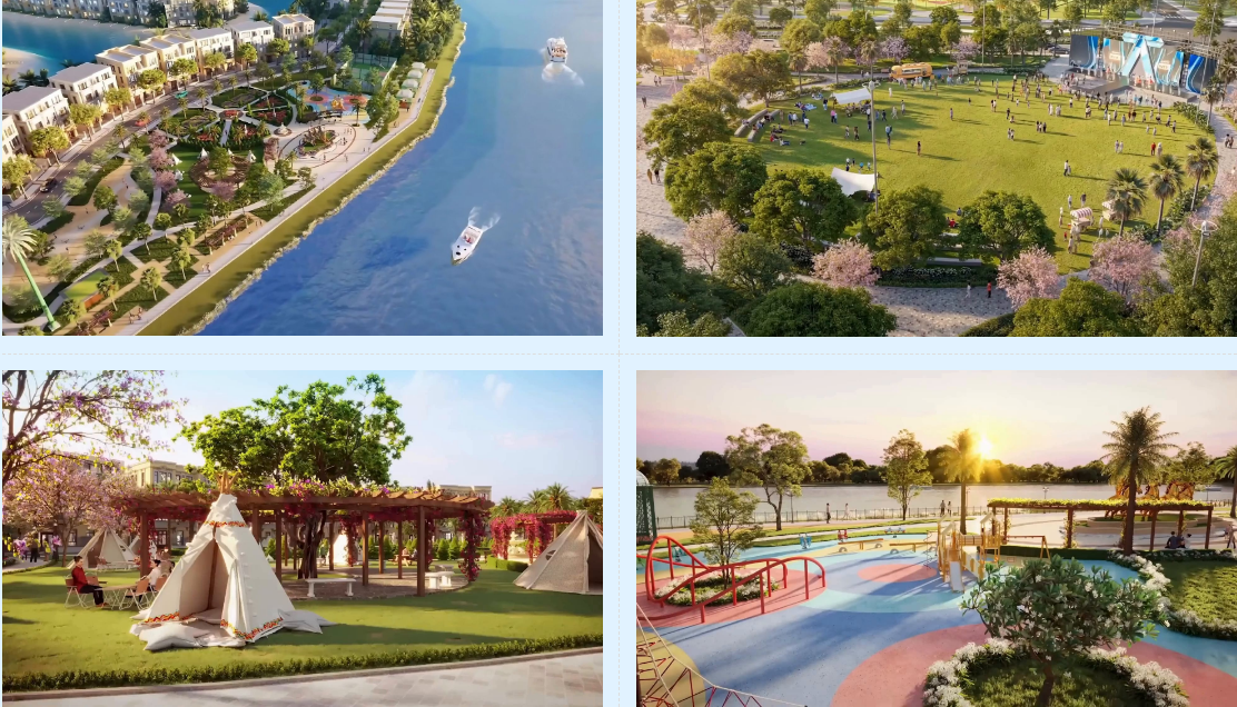 - Công viên, mảng cây xanh rộng.